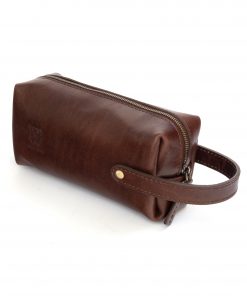 This leather toiletry bag is crafted with high quality, 100% genuine cowhide leather attached with fine and durable stitching, giving it a classic look and a slim body. An exemplary model of artisanal craft combining the pleasant feel and the handsome look of leather without sacrificing versatility and convenience.